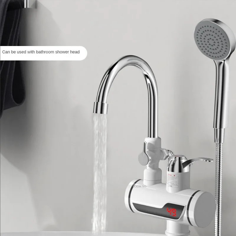 Discover the Instant Water Heater with Showerhead, a modern and efficient device that provides hot water instantly. With its power of 6500W and compact design, it fits perfectly in small bathrooms or kitchens. Enjoy easy temperature control for a personalized experience with every use.