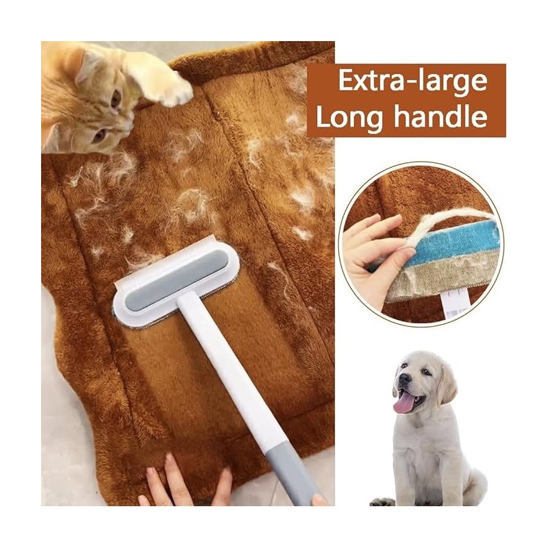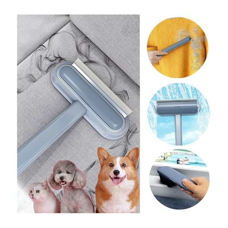 Discover the ultimate solution for pet owners with our brosse multifonctionnelle pour enlever les poils d'animaux, designed to make cleaning a breeze. This innovative tool not only excels at removing stubborn pet hair from various surfaces but also doubles as a brosse de nettoyage de vitres portable, making it an essential addition to your cleaning arsenal. The brush features an ergonomic handle crafted from durable plastic, ensuring a lightweight yet sturdy grip. Its sleek light gray design adds a modern touch to your cleaning routine. The rectangular brush head boasts a dual-surface design: one side is covered in plush blue fabric, perfect for trapping pet hair, while the smooth beige surface effortlessly wipes away dust and grime from glass and other smooth surfaces. Measuring approximately 12-15 inches in length with a head width of 5-7 inches, this multifunctional brush is easy to maneuver and store. The compact size makes it ideal for tackling messes on furniture, clothing, and even car interiors without taking up too much space. Constructed with high-quality materials like microfiber or similar soft fabrics, our brosse multifonctionnelle ensures effective hair removal without scratching delicate surfaces. Whether you're dealing with shedding season or just everyday fur accumulation, this versatile tool simplifies your cleaning tasks. Incorporate the brosse multifonctionnelle pour enlever les poils d'animaux into your household routine today! Experience the convenience of having both a reliable pet hair remover and an efficient window cleaner all in one stylish product. Say goodbye to pesky pet hair and hello to sparkling clean windows!
