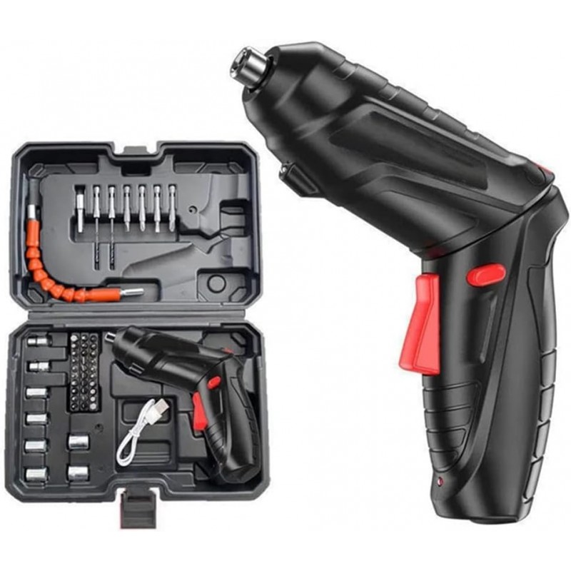 Upgrade your toolkit with the Trjgtas Mini Tournevis éLectrique Rechargeable 90 °-180 ° PoignéE Rotative LED Tournevis Perceuse Visseuse éLectrique, a compact and versatile electric screwdriver designed for both casual DIY enthusiasts and seasoned professionals. This innovative tool features an ergonomic pistol grip, ensuring comfortable handling even during extended use. The self-lock chuck securely holds various screwdriver bits, allowing for quick changes and enhanced efficiency. With its intuitive rotation button, you can easily control the direction of rotation, making it perfect for any fastening task. The integrated LED light illuminates your work area, providing visibility in low-light conditions to help you tackle projects with precision. This electric screwdriver also includes a convenient forward/reverse button, enabling seamless switching between clockwise and counter-clockwise operations. The simple on/off switch ensures user safety while conserving battery life. A handy charging indicator keeps you informed about the battery status, so you're never caught off guard. The inclusion of a USB charging port adds to its practicality, allowing you to recharge using standard USB chargers wherever you are. Its adjustable angle (90°-180°) provides flexibility in reaching screws in tight or awkward spaces—ideal for assembling furniture or completing home repairs. The durable construction combines high-quality plastic with rubberized grips for longevity and comfort during prolonged usage. Whether you're tackling small tasks around the house or engaging in larger DIY projects, the Trjgtas Mini Tournevis éLectrique is an essential addition to your toolbox that delivers reliability without compromising on performance.