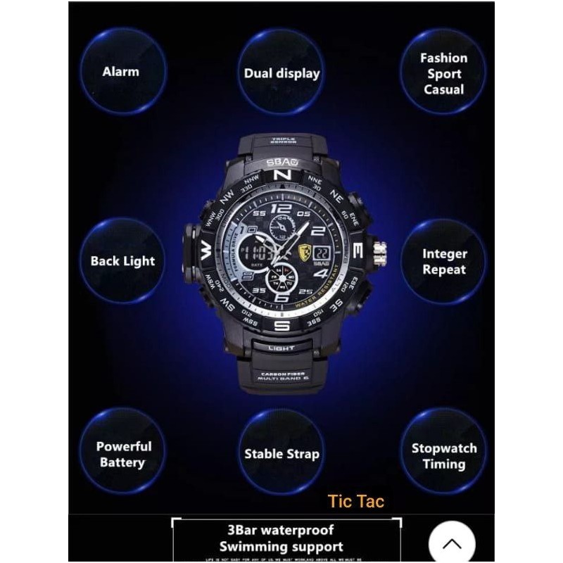 The distinctive feature of this watch is its advanced functionality: multiple sub-dials allow for precise timing as well as a useful digital display for the date and time. Additionally, the outer bezel with cardinal directions (N, E, S, W) offers practical navigation capabilities during your outdoor outings.