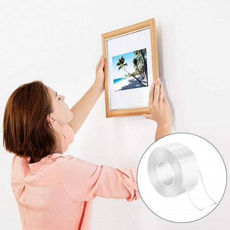 Discover the versatility of NANO RUBAN DOUBLE FACE 5M, a reusable and washable adhesive tape perfect for various applications. This transparent tape adheres firmly to smooth surfaces without leaving residue, making it ideal for home decor, office organization, and crafting. With its durable design and easy removal, this double-sided tape is your go-to solution for all your adhesive needs.