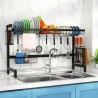 The sleek black finish adds a modern touch that complements any decor while providing strength through its robust metal construction. Measuring 13 cm in height, 26 cm in width, and 36 cm in depth, this rack fits seamlessly into standard sink areas without compromising on storage capacity.