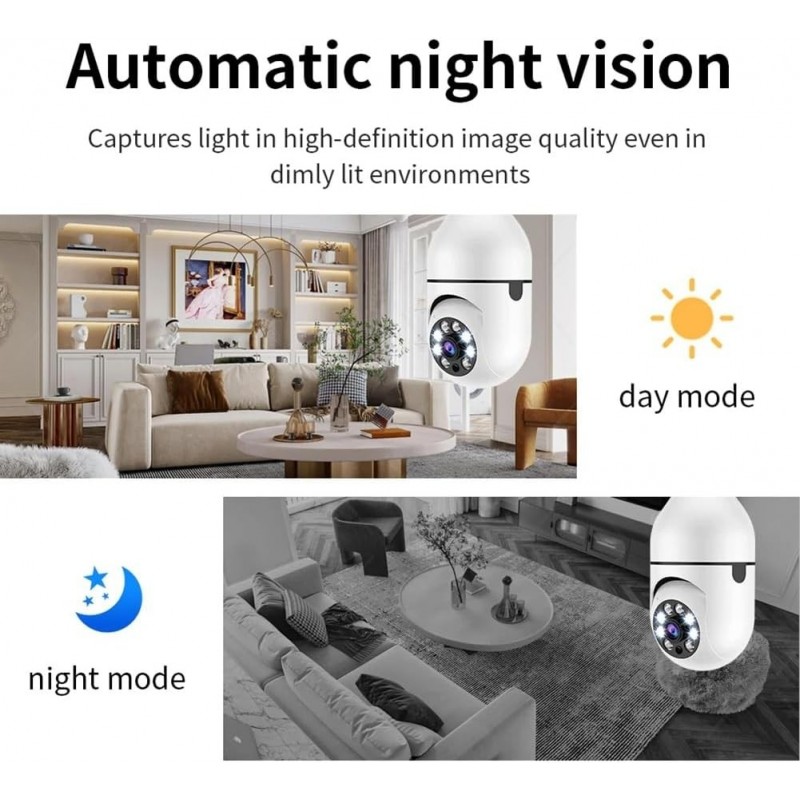 Discover the 360 Degree WiFi Outdoor Bulb Camera with Night Vision, a revolutionary surveillance system that combines security and discretion. This package of 2 cameras is designed to fit perfectly into standard light sockets, providing an elegant and effective surveillance solution. Each camera features a HD 1080P resolution with pixels up to 2MP, ensuring clear and precise images. Thanks to its night vision function, you can monitor your property even in complete darkness, without disturbing your nighttime activities thanks to infrared technology. Installation is a breeze: simply screw the camera into a common E27 socket (110V-240V) and connect the device to your WiFi network via a dedicated mobile app. This means you don't need any additional tools or complex setup to enjoy the benefits of automatic tracking. With a horizontal rotation of 355 degrees and vertical rotation of 90 degrees, these cameras eliminate blind spots, ensuring that every corner is covered. In the event of motion detection, they automatically follow the movement, enhancing security around your home. This set also includes two-way audio features, allowing users to interact in real-time through the built-in microphone. Whether to greet a visitor or deter an intruder, this feature adds an extra layer to your security system. 360 Degree WiFi Outdoor Bulb Camera with Night Vision: choose this convenient solution that combines lighting and surveillance while ensuring peace of mind!