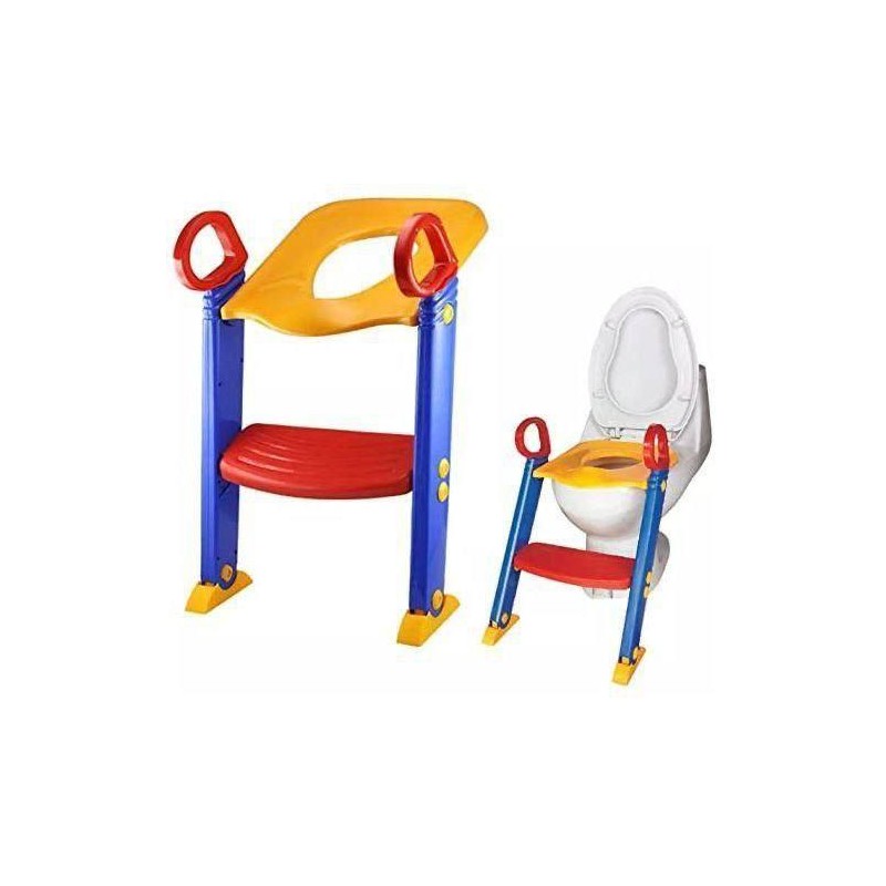 Introducing our innovative children's potty training seat, designed to make the transition from diapers to toilet use a breeze for both toddlers and parents. This essential tool is perfect for young children, typically aged 2-4 years, who are ready to embrace their newfound independence. The potty training seat features a robust plastic frame, ensuring safety and support during each use. With its two main components—a sturdy support base and a detachable toilet seat adapter—this product adapts seamlessly to standard toilets, making it convenient for everyday use. Brightly colored in shades of blue with accents of yellow and red, this potty training seat is not only functional but also visually appealing to little ones. The vibrant colors help create an inviting atmosphere that encourages toddlers to engage in the potty training process. This lightweight design allows for easy portability, making it ideal for travel or quick storage when not in use. The inclusion of two red handles on either side provides added stability, giving children the confidence they need while learning how to use the toilet independently. Your child's safety is our priority; that's why this potty training seat incorporates non-slip features that prevent sliding during use. Additionally, we ensure that all materials used are BPA-free and non-toxic, offering peace of mind as your child embarks on this important milestone. This practical solution is perfect for parents seeking an effective way to facilitate their child's toilet training journey at home or on-the-go. Choose our children's potty training seat today and watch your toddler thrive!