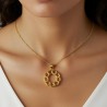 Discover the perfect blend of elegance and versatility with our stunning  necklace. This exquisite piece is designed to elevate any outfit, making it an essential addition to your jewelry collection. Crafted from high-quality  metal, the necklace features a delicate chain that showcases interlinked, oval-marbled links for a refined look. The chain measures between 16 to 18 inches in length, resting comfortably around your neck and offering a flattering fit for various necklines. At its center lies a striking circular pendant, composed of several interlocking chain links that create a cohesive design. With dimensions of approximately 1 to 2 inches in diameter, this pendant serves as an eye-catching focal point. The polished finish of the pendant reflects light beautifully, enhancing its visual appeal and adding a touch of luxury to your ensemble. Whether you're dressing up for a special occasion or looking to add flair to your everyday wear, this necklace is perfect for both casual and formal settings. This versatile accessory can be paired effortlessly with different styles and outfits. Imagine wearing it over a simple blouse or complementing an elegant dress; the possibilities are endless! The rich gold color not only adds sophistication but also ensures that this piece remains timeless in style. Add our beautiful gold necklace to your collection today and experience how it transforms even the simplest looks into something extraordinary. Shop now and embrace the charm of modern jewelry!