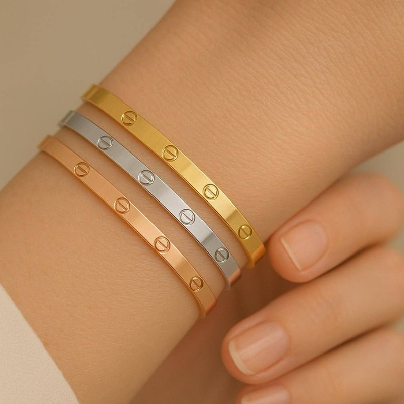 Minimalist Stainless Steel Bracelet – Gold, Silver, and Rose Finish