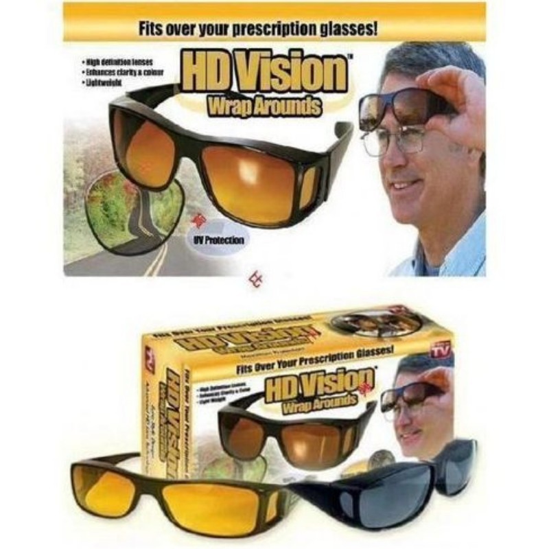 HD Vision Wrap Arounds are designed to fit over your prescription glasses, providing high definition lenses that enhance clarity and color. These lightweight glasses offer UV protection, making them perfect for outdoor use while ensuring comfort and style.