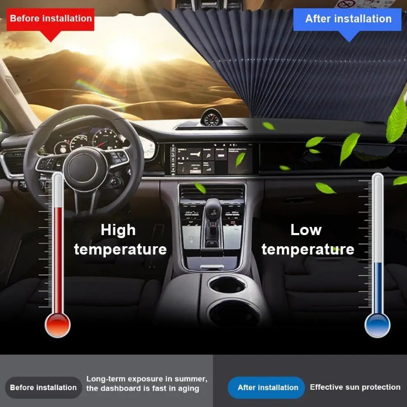 The Retractable Car Sunshade is your essential companion for hot summer days. Crafted to offer maximum UV protection, this sunshade helps maintain a cooler interior temperature, protecting your dashboard and upholstery from harmful sun damage. Its accordion design allows for easy installation and removal, ensuring convenience and efficiency. Lightweight and portable, it’s the perfect travel accessory for any vehicle owner.