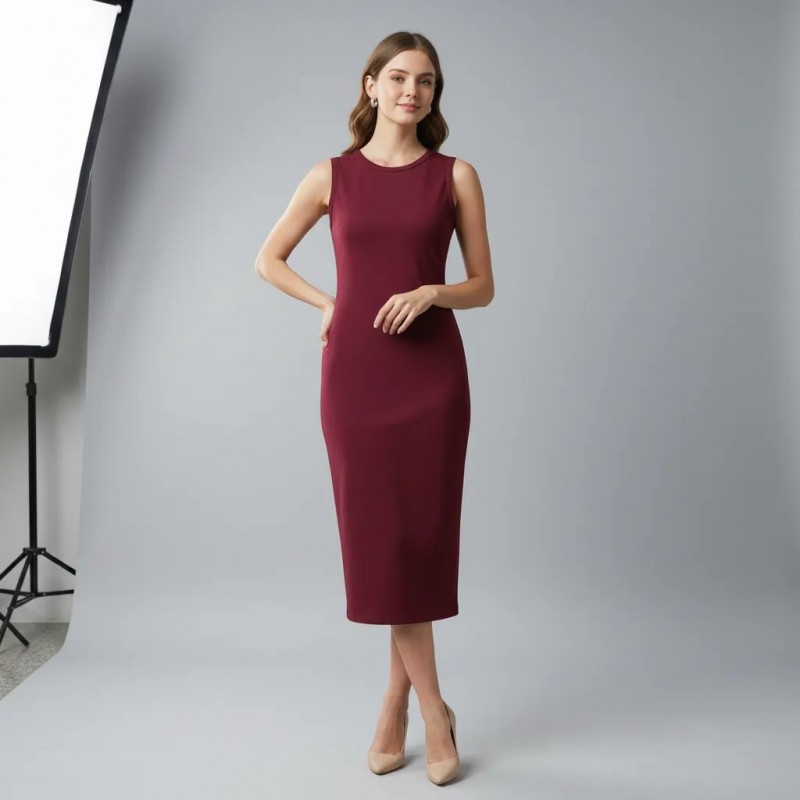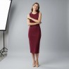 Turn heads with this chic burgundy midi dress, perfect for any elegant occasion. Its sleek design and rich color make it a wardrobe essential.