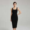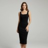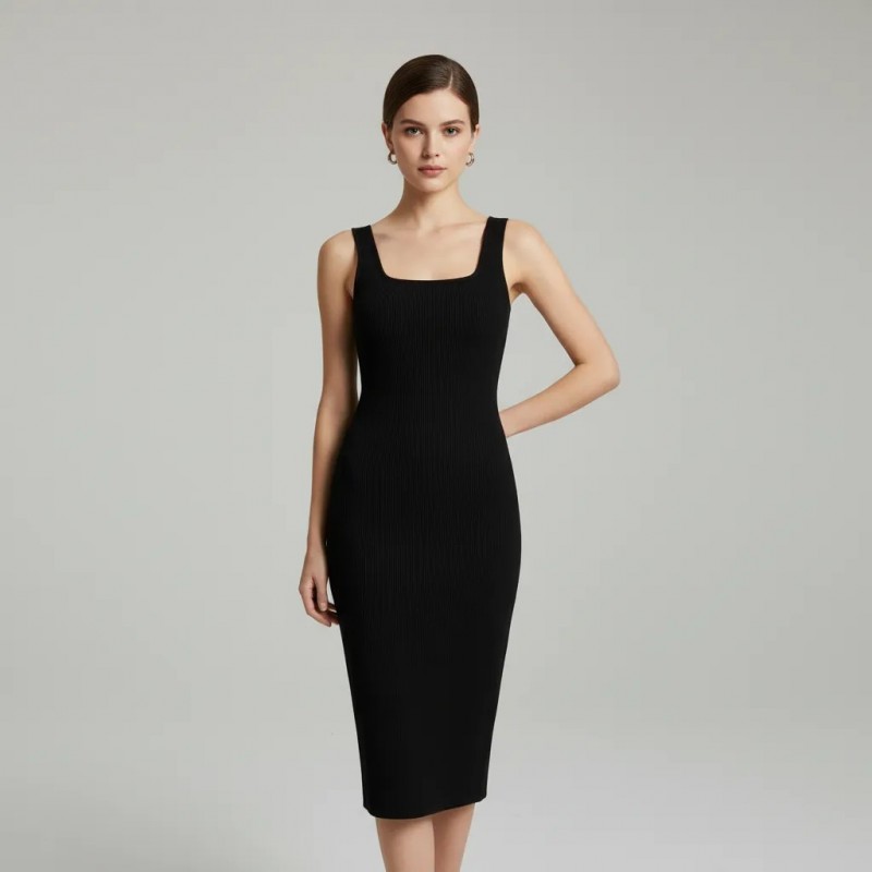 This elegant black midi dress is crafted for those who appreciate classic style and sophistication. The dress features a sleek, body-hugging silhouette with a square neckline that enhances your natural shape. Made from high-quality materials, it offers both comfort and durability. Whether you're attending a formal event or a night out, this dress is designed to make you look and feel your best. Pair it with your favorite accessories for a complete, polished look.