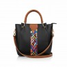 Stylish and versatile, this black handbag features a vibrant, colorful strap that adds a touch of flair to any outfit.