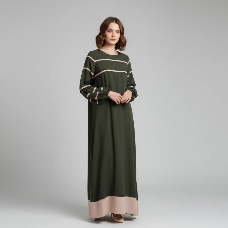 Step out in style with this exquisite long sleeve maxi dress, crafted to offer both comfort and elegance. The dress showcases a timeless design with subtle striped details across the bodice and sleeves, adding a touch of modern flair. Made from high-quality materials, it ensures a flattering fit and all-day comfort. Whether you're attending a special event or enjoying a casual day out, this dress is your go-to choice for effortless elegance.