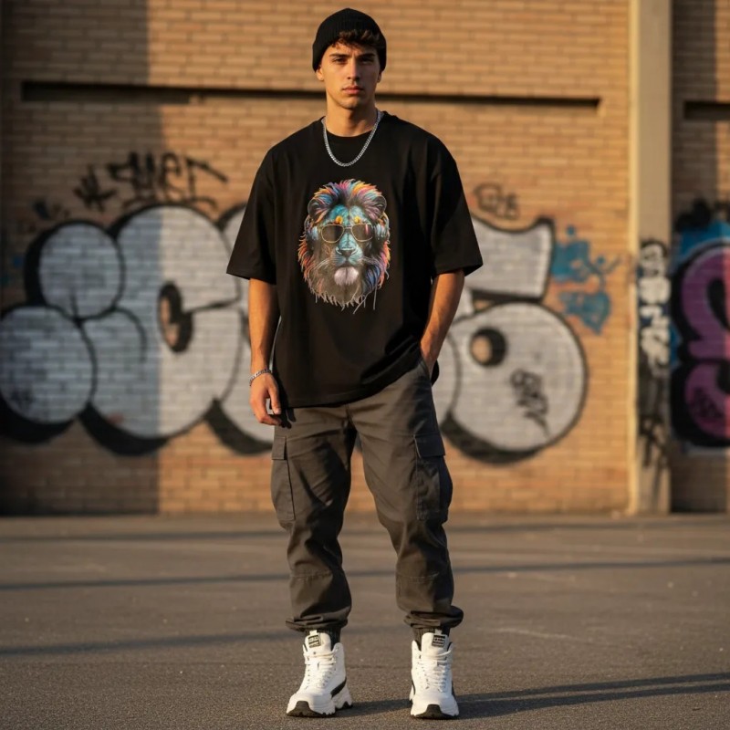 This Urban Lion Graphic T-Shirt combines comfort and style, making it a perfect addition to any casual wardrobe. Made from high-quality fabric, it features a colorful lion design that stands out, ideal for expressing individuality and style.