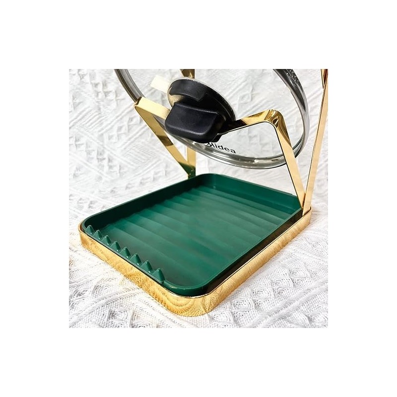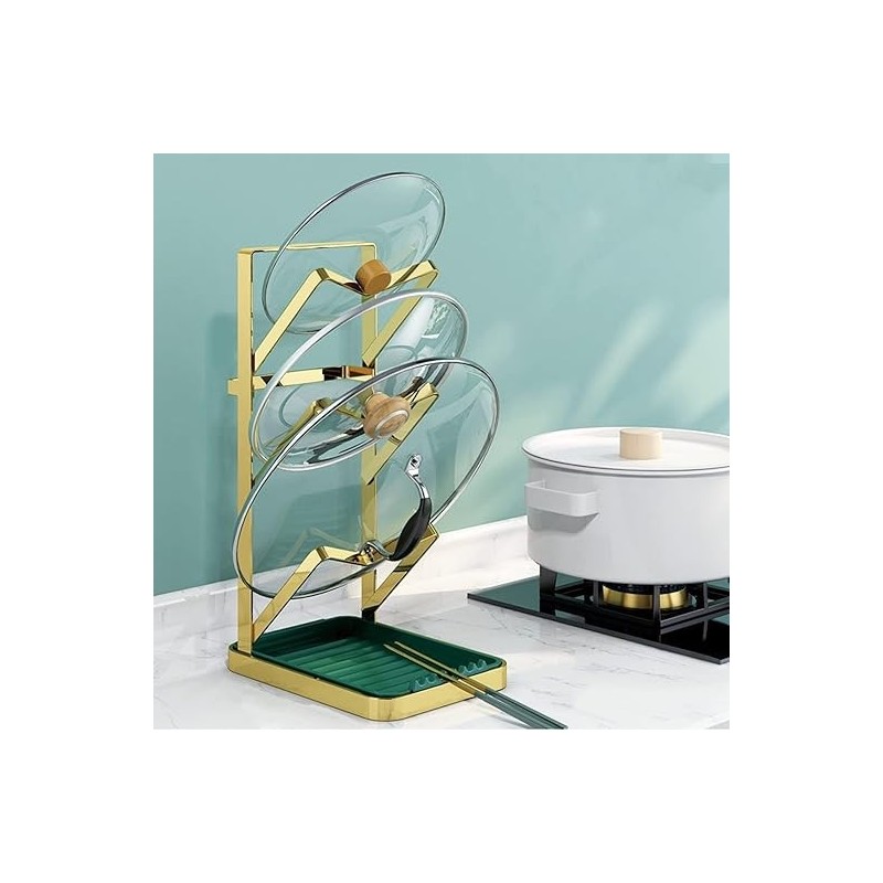 The pot lid holder is made of high-quality metal, and the coating can protect your pot lid from scratches. High quality iron paint, wide design won't strain your hand. The bottom plate is made of high-quality plastic material, and the bottom PET non-slip feet prevent it from sliding or scratching the surface, which is sturdy and stable, and has a solid structure.