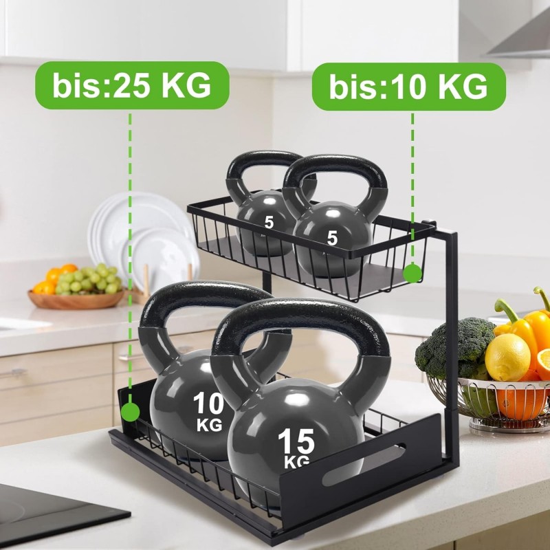 Maximize your kitchen space with this sleek under-sink organizer featuring two sliding baskets for easy access to your essentials.