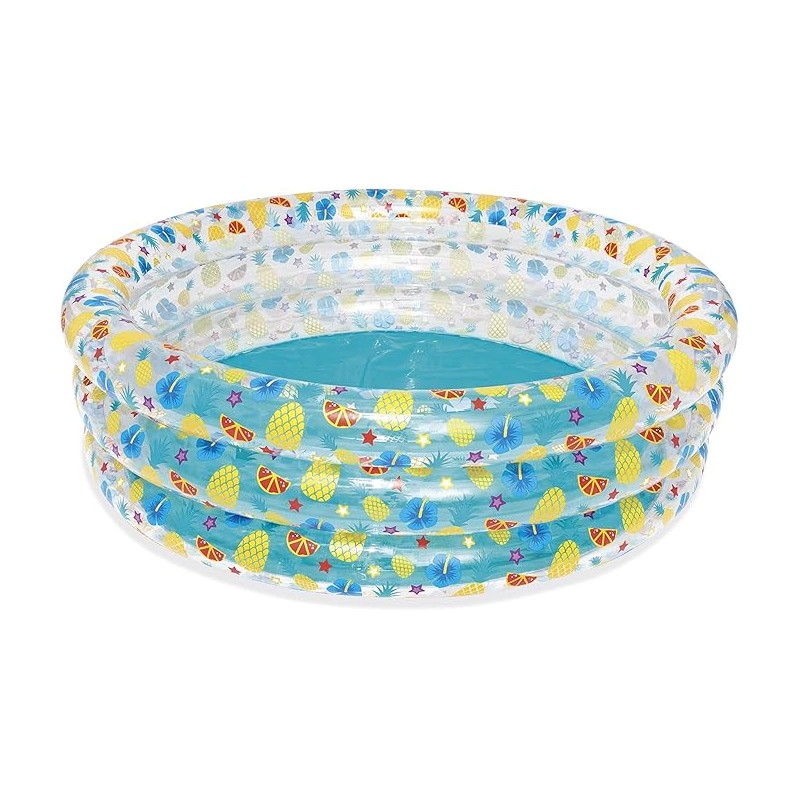 Transform your backyard into a summer paradise with our delightful inflatable swimming pool. Perfectly designed for children, this vibrant pool features a clear structure adorned with colorful patterns of fruits, flowers, and playful sea creatures. These eye-catching designs wrap around the top rim, creating an inviting atmosphere that sparks joy and imagination. The spacious interior is filled with bright, clear water that reflects the sunlight, making it an ideal spot for your little ones to cool off on warm days. With its child-friendly dimensions, this inflatable pool provides a safe environment for water play right in the comfort of your home. Whether it's splashing around or simply lounging in the sun, children will love every moment spent in their new aquatic retreat. This inflatable swimming pool is not just about fun; it also promotes family bonding. Picture yourself enjoying quality time as you engage in playful activities with your kids by the poolside. The cheerful ambiance encourages laughter and interaction, making it perfect for summer gatherings or quiet afternoons at home. Constructed from durable materials, our inflatable swimming pool ensures longevity while being easy to set up and take down when not in use. Its lightweight design allows for effortless transportation to any outdoor space—be it your backyard or a family picnic at the park. This summer essential is more than just a product; it's an opportunity to create lasting memories filled with joy and laughter. Make every sunny day special by adding our inflatable swimming pool to your collection of outdoor fun!