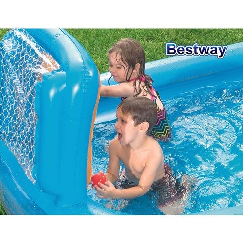 Transform your backyard into a summer paradise with our exciting inflatable pool game. Perfect for children, this vibrant and engaging product is designed to enhance outdoor play experiences while promoting physical activity and social interaction. The inflatable pool features a rectangular shape with rounded corners, ensuring safety for little ones as they dive into fun. Constructed from durable, puncture-resistant vinyl, it guarantees longevity even during the most energetic play sessions. The bright blue color scheme is complemented by eye-catching orange and white accents around the scoring areas, making it visually appealing. This inflatable game includes a built-in scoring system, complete with three point zones labeled 25, 50, and 100. Children can test their skills by tossing colorful balls into the netted area beside the scoring panel. This not only adds an element of competition but also helps develop hand-eye coordination in a playful environment. The setup process is quick and hassle-free; simply inflate it when you're ready to play and deflate it for easy storage afterward. Its lightweight design makes it portable enough to take along to parks or beach outings as well. This inflatable pool game falls under the category of inflatable pool toys, making it an ideal choice for outdoor parties or summer activities. With its soft edges and buoyant structure, parents can rest assured that their kids are playing in a safe environment while enjoying hours of entertainment. Add this fun-filled inflatable pool game to your collection today and watch as your children create unforgettable memories filled with laughter and joy!