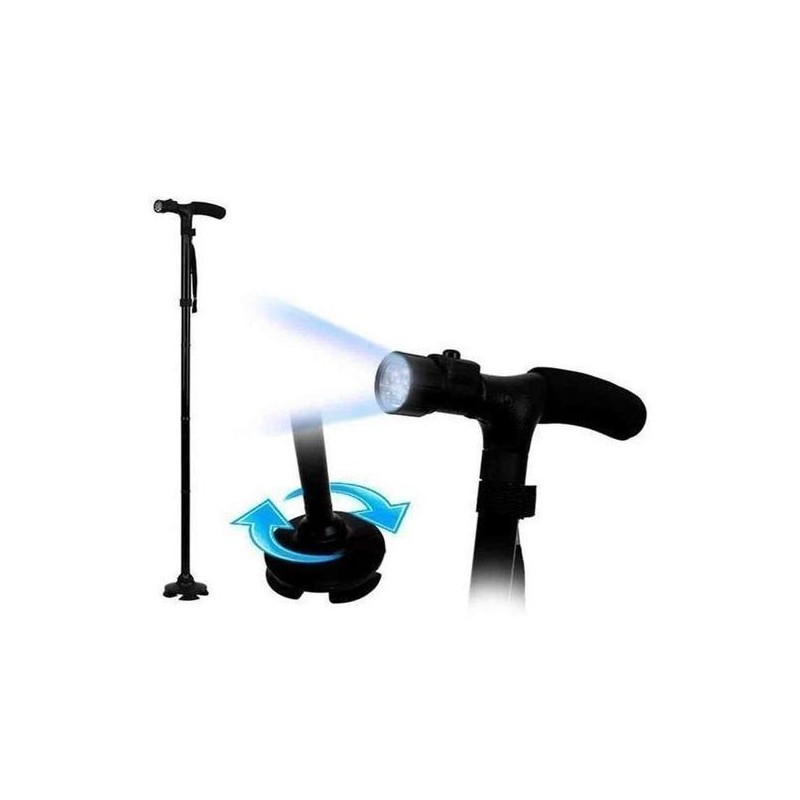 Le paquet comprend:1 x Canne télescopiqueCaractéristiques:-Réglage de la hauteur à 5 niveaux: La hauteur peut être ajustée en appuyant légèrement sur le bouton de perle.-Stable à utiliser: Peut se tenir seul avec une base de 4 pieds qui est antidérapante et peut être tournée à 360 ° pour s'adapter à toutes sortes de chemins.-Flexible et pratique: L'angle de la lumière LED peut être ajusté. Plus sûr à utiliser avec bouton d'alarme.-Se lève facilement: Accoudoir sur le côté pour aider les personnes âgées à se lever. Sans effort et pratique à utiliser.Description:Avec des caractéristiques télescopiques et pliables, cette canne est pratique à transporter pendant les voyages ou les sorties. Il peut aider l'aîné à marcher à l'extérieur de manière stable et sûre pour respirer l'air frais, expérimenter la vie colorée et profiter du temps glorieux pour le reste de sa vie. Cadeau idéal et parfait pour les personnes âgées.