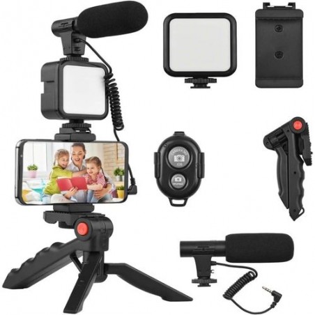 ed Kit de vlogging pour iPhone, Android (avec trépied), avec mini lampe vidéo LED