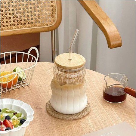 Tasses en verre de 500ml avec couvercle et pot Mason en paille