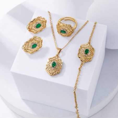 Ensemble de Bijoux Élégants en Or et Gemmes Vertes