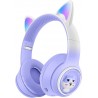 Casque Chat | Écouteurs d'oreille Chat sans Fil Brillants dégradés | Casque Confortable Mignon, Casque à Sangle tête réglable