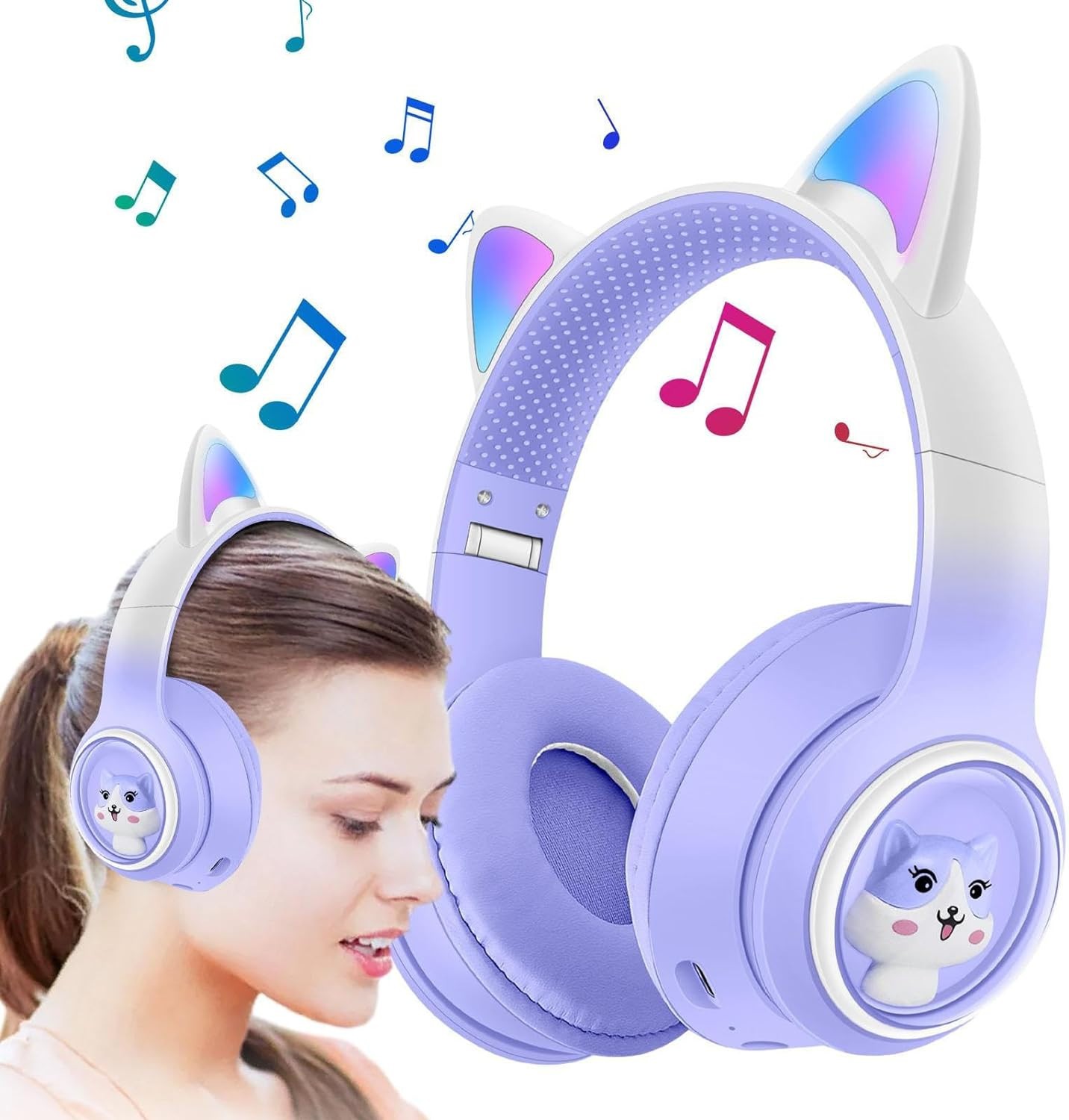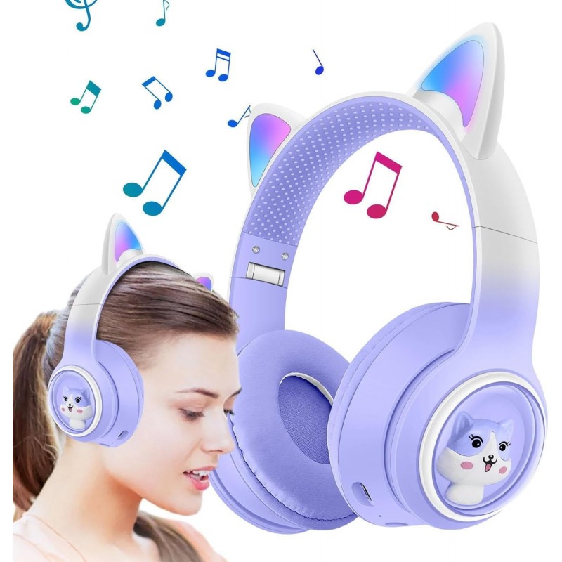 Découvrez le Casque Chat | Écouteurs d'oreille Chat sans Fil Brillants dégradés | Casque Confortable Mignon, Casque à Sangle tête réglable. Avec un design ludique et des oreilles de chat stylisées, ces écouteurs offrent un confort optimal grâce à leur bandeau ajustable et leurs coussinets doux. Idéaux pour le gaming ou l'écoute musicale, ils allient style et fonctionnalité.