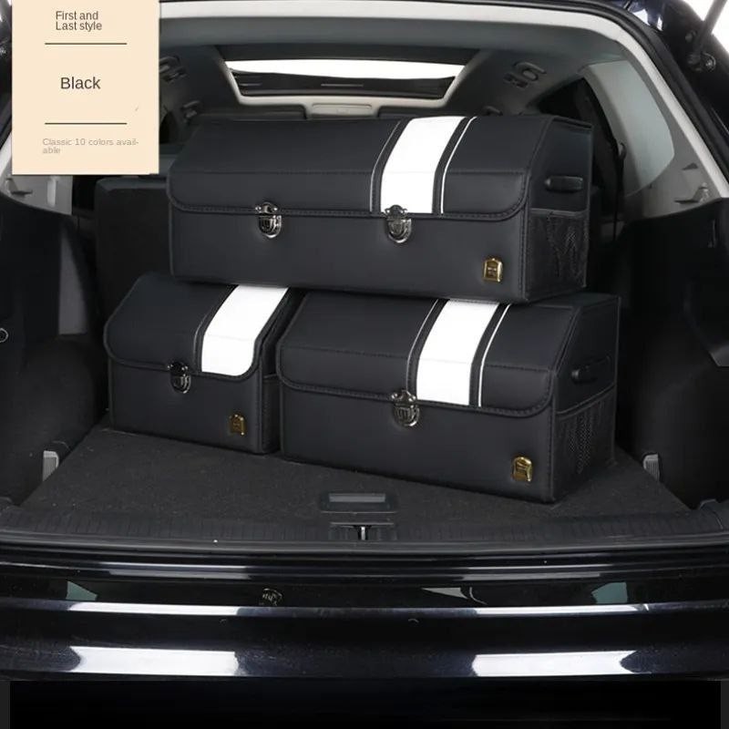 Découvrez le Sac de Rangement de Luxe pour Coffre de Voiture, l'accessoire incontournable pour tous les automobilistes soucieux d'organisation et de style. Conçu avec un matériau synthétique haut de gamme qui imite le cuir, ce sac allie durabilité et élégance. Sa couleur noire, accentuée par une bande blanche distinctive, apporte une touche sportive à votre véhicule. Ce sac présente une structure robuste, idéale pour maintenir en sécurité vos affaires lors des trajets. Avec des dimensions généreuses, il est parfait pour stocker tout ce dont vous avez besoin : outils, kits d'urgence ou courses hebdomadaires. Grâce à son design rectangulaire et légèrement incliné, il s'intègre parfaitement dans votre coffre sans compromettre l'espace. L'un des atouts majeurs du Sac de Rangement est son système de fermeture sécurisé. Équipé d'un fermoir en métal à l'avant, il garantit que vos objets restent bien en place pendant la conduite. De plus, sa poignée latérale facilite la manipulation lors du chargement ou du déchargement. L'intérieur doux protège vos biens contre les éraflures tout en étant facile à nettoyer grâce au tissu imperméable qui prévient les éclaboussures et les déversements. Ce sac peut être plié jusqu'à un tiers de sa taille lorsque vous ne l'utilisez pas, optimisant ainsi votre espace. Que vous choisissiez la taille M ou XL selon vos besoins spécifiques, le Sac de Rangement de Luxe pour Coffre de Voiture est conçu pour répondre aux exigences modernes des conducteurs souhaitant allier praticité et esthétique dans leur véhicule.