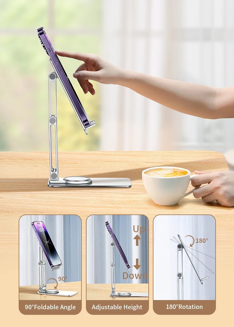 Support de Téléphone Rotatif de Bureau en Métal Réglable