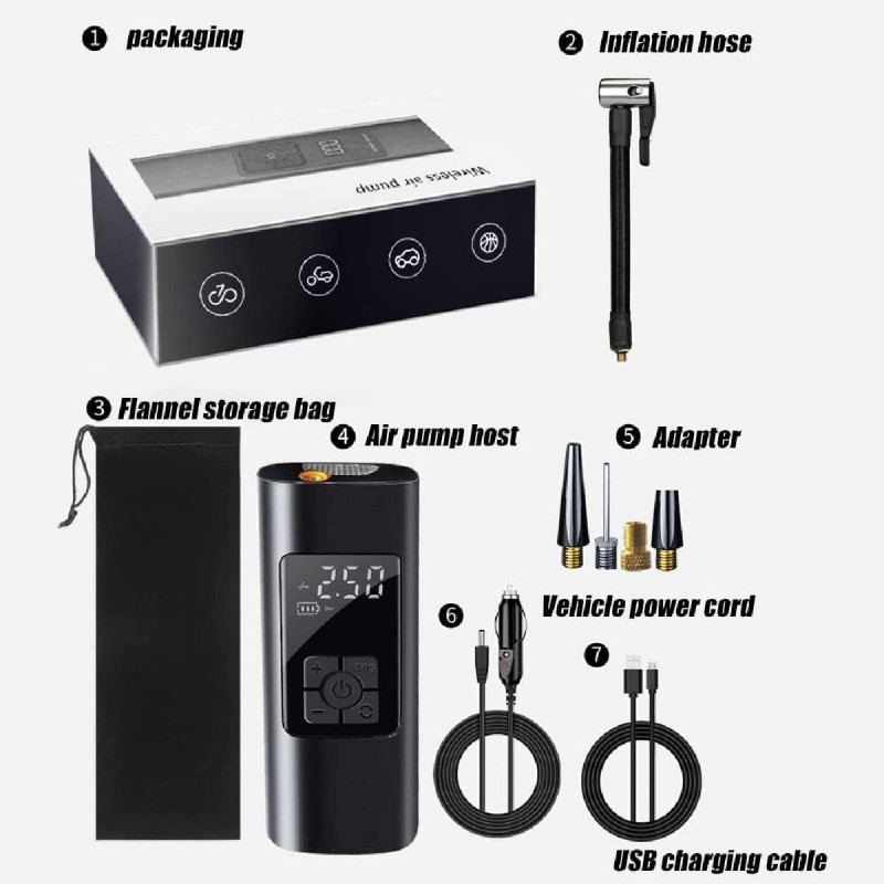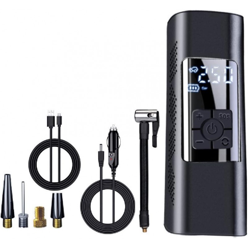 Présentation de la Pompe à Vélo Électrique Compresseur d'Air Portable Gonfleur de Pneus Recharge USB 6000mAh avec Écran LCD Numérique pour Voitures, votre solution ultime pour un gonflage de pneus sans effort. Cette pompe compacte et légère est conçue pour offrir une commodité en déplacement, la rendant parfaite pour les voitures, les motos, les vélos et même les équipements sportifs. Équipée d'une puissante batterie rechargeable de 6000mAh, cette pompe à air garantit que vous disposez d'une puissance suffisante pour plusieurs gonflages avant de nécessiter une recharge. Le port de chargement USB intégré vous permet de la charger facilement à partir de divers appareils, améliorant ainsi sa portabilité. Le design convivial comprend un écran LCD numérique clair, affichant des lectures de pression en temps réel en bar et en PSI. Vous pouvez surveiller sans effort la pression de vos pneus et définir des niveaux cibles à l'aide des commandes intuitives. Le panneau avant inclut des boutons essentiels tels que l'alimentation, le signal SOS pour les urgences, et des ajustements plus/moins pour des réglages de gonflage précis. Cette pompe polyvalente supporte des pressions allant jusqu'à 10,3 bar (150 psi), la rendant adaptée non seulement aux pneus de véhicules mais aussi aux ballons de sport gonflables et autres articles nécessitant de l'air. Son fonctionnement sans fil signifie que vous pouvez gonfler des pneus sans être relié à une prise, offrant une flexibilité maximale lors de son utilisation. Le boîtier en plastique durable garantit que cette pompe à vélo électrique résiste à l'usure au fil du temps tout en maintenant son apparence élégante en noir mat avec des couleurs d'affichage contrastées qui améliorent la lisibilité même dans des conditions lumineuses. La Pompe à Vélo Électrique Compresseur d'Air Portable Gonfleur de Pneus Recharge USB 6000mAh avec Écran LCD Numérique pour Voitures est plus qu'un simple gonfleur, c'est un compagnon fiable conçu pour vous permettre de voyager en douceur à chaque trajet !