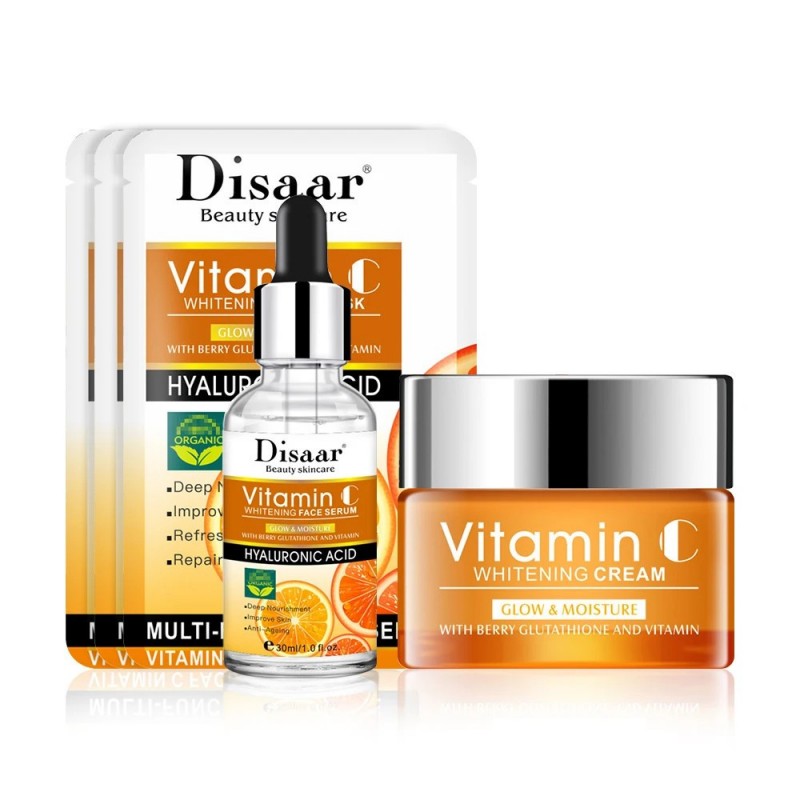 Découvrez le pouvoir transformateur du visage à la vitamine C de Disaar. Cet ensemble de soins de la peau complet comprend un nettoyant facial, un tonique, un sérum, une crème et un nettoyant, tous enrichis en vitamine C et en acide hyaluronique. Conçu pour éclaircir votre teint tout en offrant une hydratation profonde et des bienfaits anti-acné, il est parfait pour une utilisation quotidienne afin d'obtenir une peau radieuse.