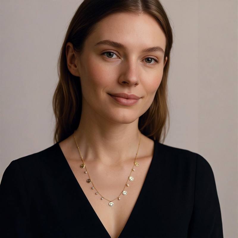 Élevez votre style avec ce magnifique collier en or, mettant en avant des charms ronds délicats qui captent la lumière de manière magnifique. Fabriqué avec précision, ce collier est un accessoire idéal pour les tenues décontractées et formelles. Son design intemporel garantit qu'il sera un favori dans votre collection de bijoux pendant des années.