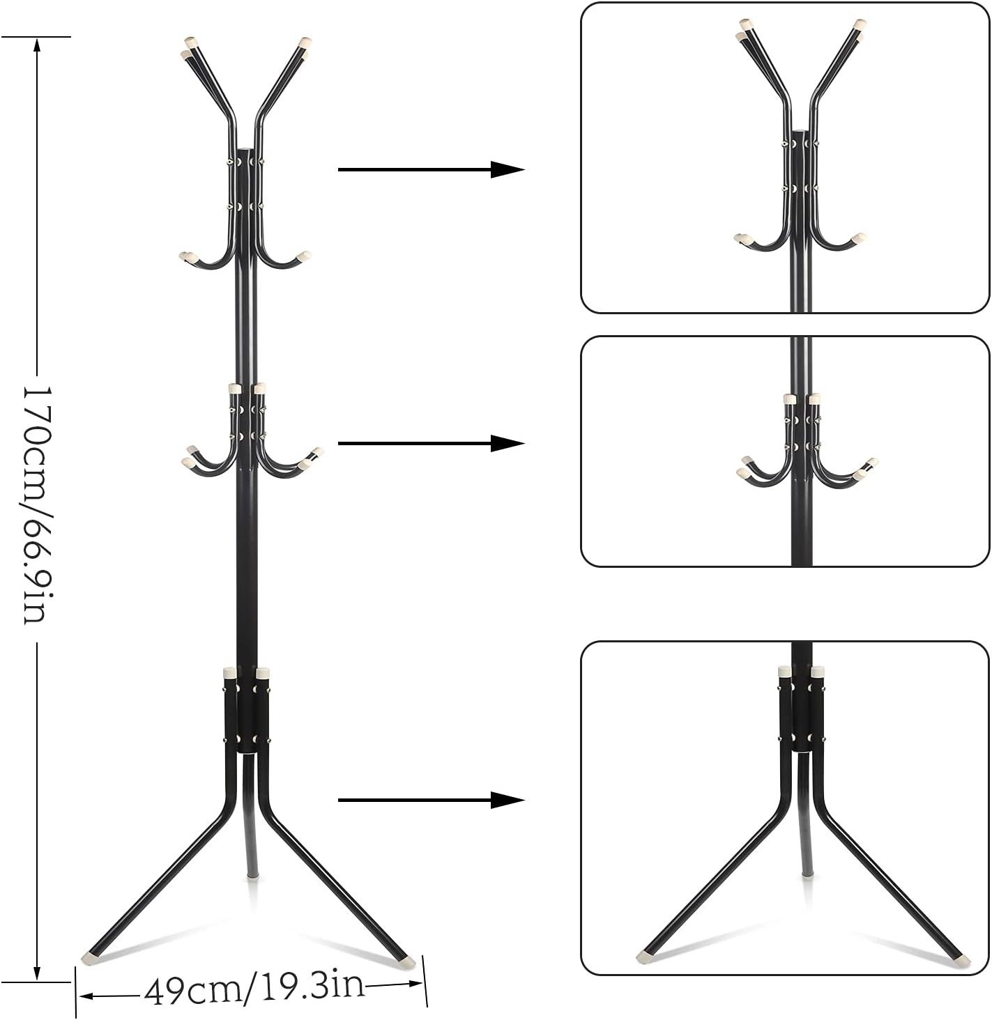 L'étagère de style arbre avec 12 crochets est très pratique et pratique à utiliser.