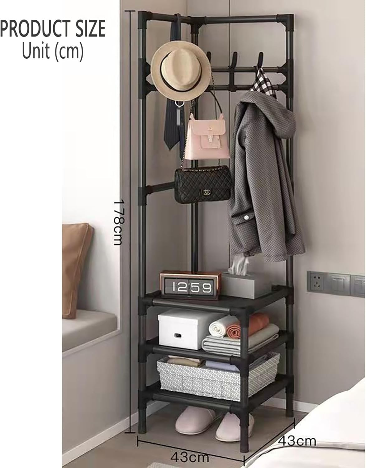 Caractéristiques : 1) Processus de peinture de haute qualité, imperméable et antirouille. 2) Fabriqué en acier peint épais de haute qualité, forte capacité de charge. 3) Design multicouche, grand espace de rangement pour le rangement. 4) Pied surélevé, design de coussinet antidérapant, imperméable et résistant à l'humidité. 5) Convient pour porte d'entrée, chambre, salon, salle de bain, balcon, etc. 6) Respectueux de l'environnement, élégant, pratique, stocké, amovible et assemblé. Caractéristiques : Nom de l'article : étagère à chaussures et manteaux 2/3 couches. Matériau : tube en acier peint + plastique PP. Couleur : noir, blanc. 2 couches : 178 x 43 x 43 cm. 3 couches : 178 x 43 x 43 cm. Conseils : 1. Nous vous fournissons les meilleurs produits et services. Si vous rencontrez un problème, veuillez nous le faire savoir, et nous allons résoudre le problème. Merci beaucoup. 2. En raison des différences dues à l'écran et à l'éclairage, la couleur de l'article peut être légèrement différente de celle de la photo. Les mesures étant prises à la main, les tailles indiquées peuvent varier légèrement. 4,1 cm.
