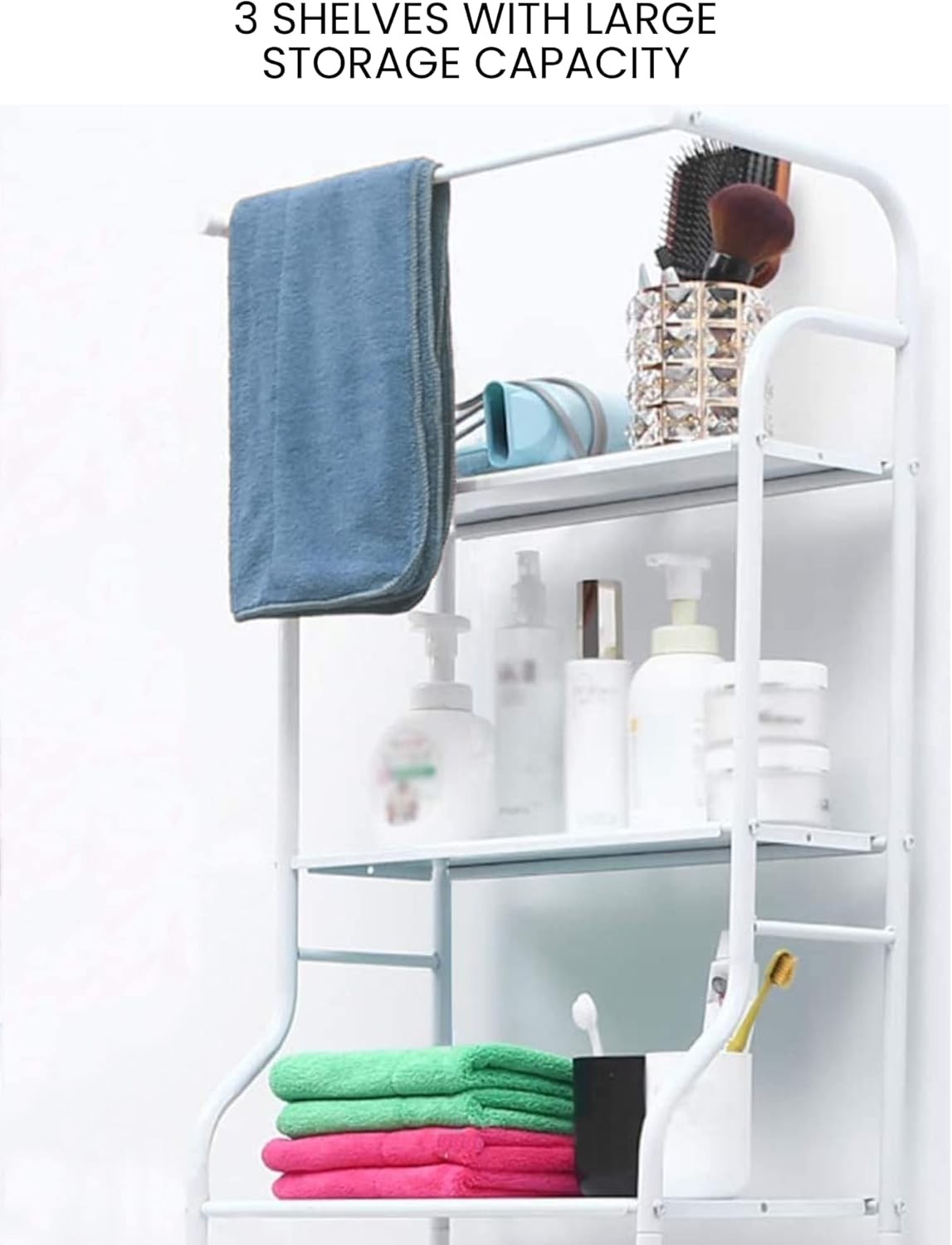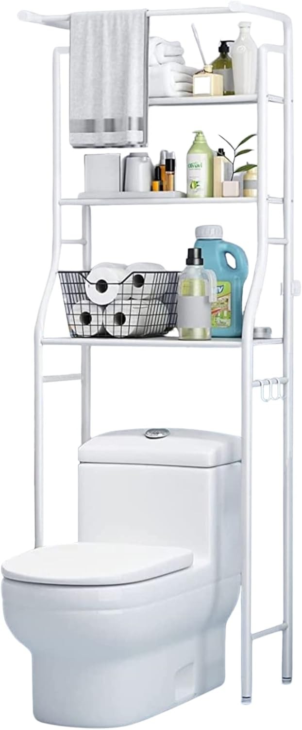 Étagère de rangement à 3 niveaux idéale pour une utilisation dans la salle de bain au-dessus des toilettes. Vous pouvez organiser et placer des serviettes, du shampoing, des bouteilles de gel, du papier toilette et d'autres fournitures pour rendre votre salle de bain propre et bien rangée.