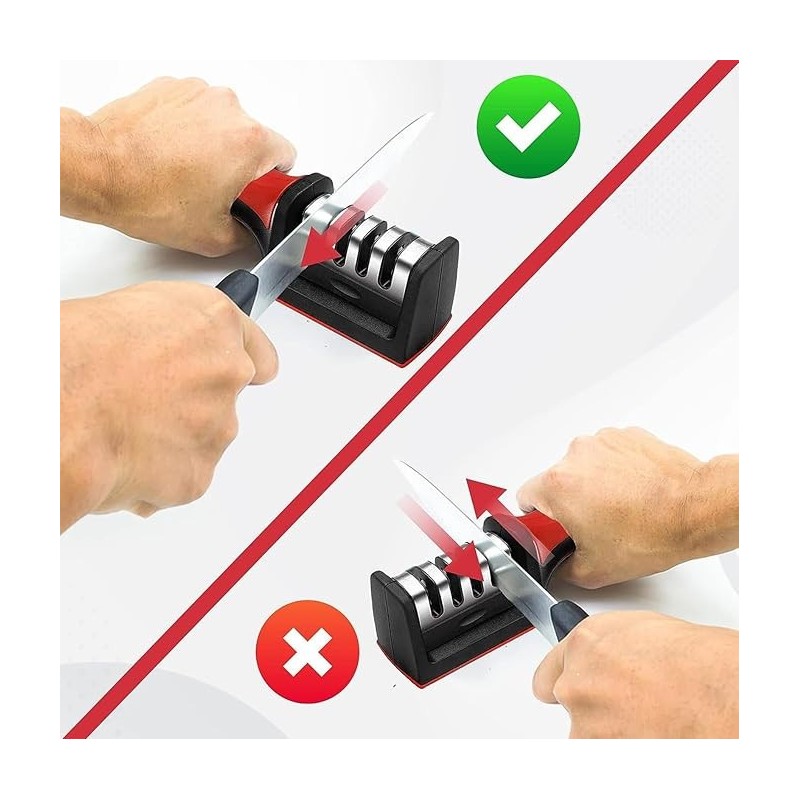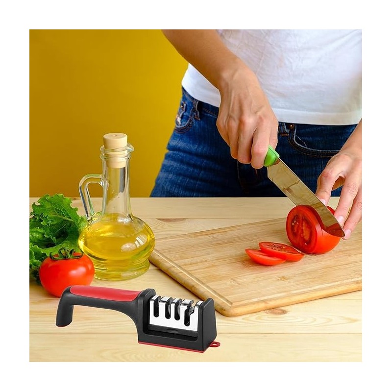 L'aiguiseur de couteaux adopte un corps en plastique ABS et une rainure de lame en acier au tungstène, en céramique de haute dureté, qui est durable et a toujours l'air et s'utilise comme neuf. Contrairement aux pierres à aiguiser, les affûteurs manuels durent plus longtemps et peuvent résister au stress de l'affûtage. L'aiguiseur couteaux professionnel est équipé de 4 rainures pour aider à réparer les couteaux émoussés avec différents niveaux d'usure de la lame. Choisissez parmi des rainures grossières, fines, fines et en ciseaux pour réparer les lames émoussées et leur redonner leur tranchant d'usine en quelques opérations simples.