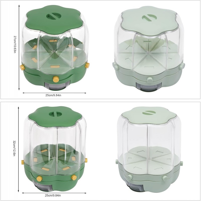 Transformez votre cuisine avec le Distributeur de céréales avec 6 grilles, rotatif à 360 °, un récipient à riz idéal pour la maison. Ce produit innovant offre un espace de stockage spacieux, parfait pour conserver vos céréales et autres aliments secs en toute sécurité. Grâce à sa conception pratique, il garantit commodité et facilité d'utilisation au quotidien. Fabriqué en matériau PP de qualité alimentaire, ce distributeur maintient vos grains frais et secs grâce à son système de rangement scellé. La transparence du récipient permet une visibilité optimale, vous aidant ainsi à surveiller facilement les niveaux de stock. Plus besoin d'ouvrir chaque compartiment : il suffit d'une simple pression sur le bouton vert ergonomique pour accéder rapidement aux aliments souhaités. Avec ses six compartiments distincts, ce distributeur est parfait pour organiser une variété d'aliments secs tels que le riz, les pâtes ou même des collations. Sa capacité rotative à 360 degrés facilite l'accès aux différentes sections sans effort. De plus, la tasse de drainage intégrée élimine l'excès d'eau tout en préservant la fraîcheur des ingrédients. L'esthétique moderne du Distributeur de céréales s'intègre parfaitement dans n'importe quelle cuisine contemporaine grâce à son design minimaliste et sa couleur douce qui apportent une touche élégante. Que vous soyez un amateur de cuisine ou simplement quelqu'un qui souhaite garder son espace organisé, cet accessoire est fait pour vous. N'attendez plus ! Optez dès aujourd'hui pour le Distributeur de céréales avec 6 grilles afin d'améliorer votre expérience culinaire tout en maintenant vos aliments secs dans des conditions optimales.