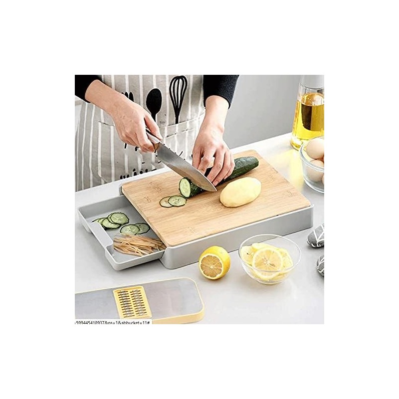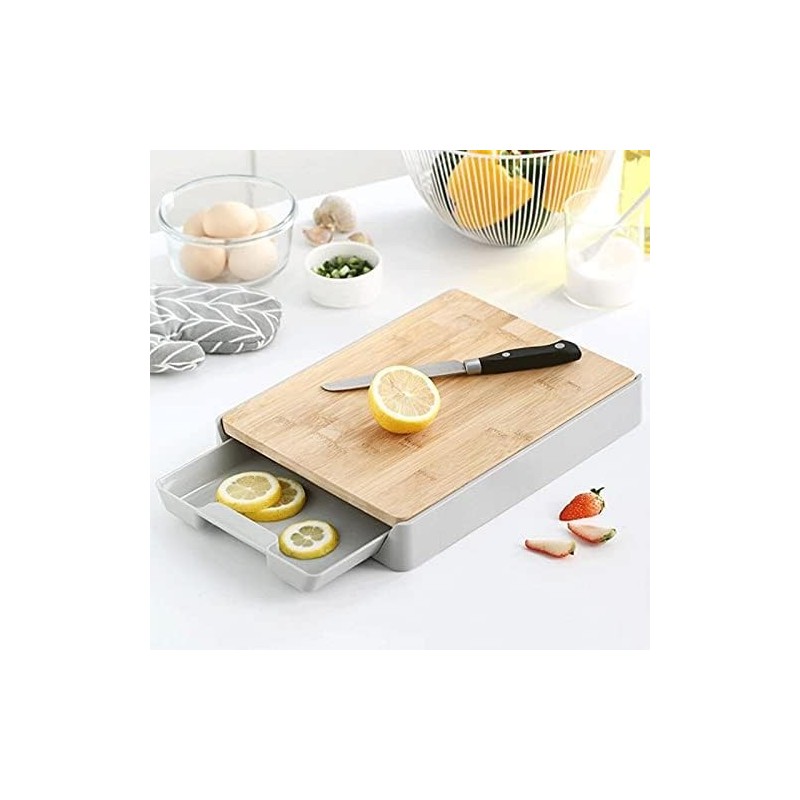 Découvrez la planche à découper JOPLAX, خيزران قطع المجلس - planche à découper en bambou avec des conteneurs - planches à découper pour la cuisine avec fromage, viande et légumes - POUR LA PRÉPARATION/STOCKAGE DES ALIMENTS. Cette planche à découper en bambou polyvalente dispose d'un tiroir intégré pour une préparation et un stockage des aliments faciles. Sa surface durable est parfaite pour trancher viandes, légumes et fromages tout en améliorant l'esthétique moderne de votre cuisine.