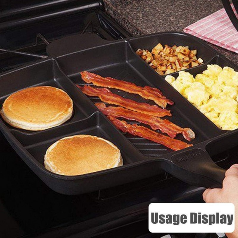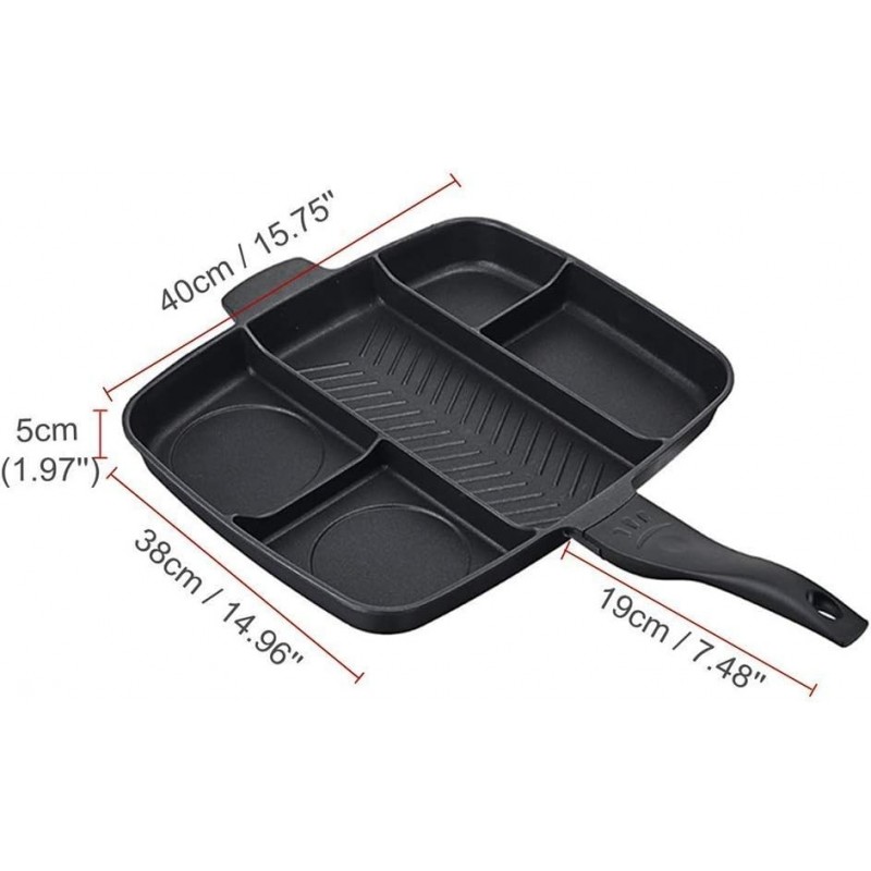 Découvrez la Casserole divisée à 5 Sections, poêle antiadhésive à Fond Plat en Aluminium, poêle à Griller 5 en 1, Compatible avec cuisinière, l'ustensile de cuisine parfait pour les amateurs de gastronomie. Avec sa conception innovante et ses cinq sections distinctes, cette poêle vous permet de préparer plusieurs plats simultanément, idéal pour les repas en famille ou entre amis. Fabriquée en aluminium, cette poêle assure une excellente conduction thermique pour une cuisson uniforme. Son revêtement antiadhésif garantit un démoulage facile et un nettoyage rapide après utilisation. Grâce à sa surface lisse et résistante aux rayures, vous pouvez cuisiner sans craindre d'abîmer votre ustensile. Mesurant environ 40 cm de long et 38 cm de large avec une profondeur de 5 cm, la Casserole divisée offre suffisamment d'espace pour griller, frire ou sauter vos ingrédients préférés. Les deux sections circulaires et le grand espace central sont parfaits pour des plats variés tandis que les petites sections rectangulaires permettent d'ajouter des accompagnements ou des sauces. L'un des atouts majeurs de cette poêle est sa compatibilité avec tous types de feux : induction, gaz ou électrique. Son fond plat diffuseur assure une chaleur rapide tout en étant économe en énergie. La poignée ergonomique est conçue en bakélite thermorésistante pour garantir sécurité et confort lors du maniement. Avec son design moderne et élégant, la Casserole divisée à 5 Sections ne se contente pas d'être fonctionnelle ; elle embellit également votre cuisine tout en répondant aux besoins culinaires quotidiens comme aux occasions spéciales. Ne manquez pas l'opportunité d'améliorer votre expérience culinaire !