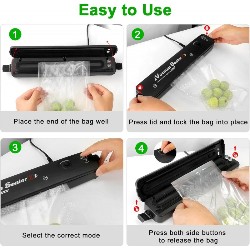 Découvrez la commodité de notre Scelleuse Sous Vide Automatique Scelleuse One Touch Machine de Scellage pour Emballage de Nourriture Sèche avec 20 Sacs de Scellage Sous Vide. Cet appareil compact et facile à utiliser scelle sans effort les aliments pour maintenir leur fraîcheur et réduire le gaspillage. Parfait pour les cuisiniers à domicile, il dispose de plusieurs modes et de voyants lumineux pour une utilisation facile, rendant le stockage des aliments un jeu d'enfant.