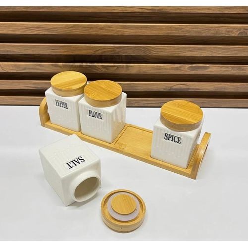 Améliorez l'organisation de votre cuisine avec notre élégant ensemble de bocaux de cuisine. Composé de quatre bocaux en céramique de forme carrée surmontés de couvercles en bambou naturel, cet ensemble est parfait pour stocker de la farine, des épices, du sel et du poivre. Le design moderne complète n'importe quel décor tout en garantissant une identification facile des contenus. Élevez votre espace de cuisson avec cette solution de rangement fonctionnelle et chic.