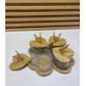 Découvrez notre magnifique ensemble de plats de service décoratifs, présentant un charmant design en forme de fleur avec des contenants en verre en forme de cœur. Fabriqué en bambou naturel et orné de poignées en forme de bois de cerf dorées et ludiques, cet ustensile de cuisine rustique ajoute de l'élégance à toute réunion. Parfait pour servir des collations ou des apéritifs, c'est un choix idéal pour les occasions romantiques et les célébrations festives.