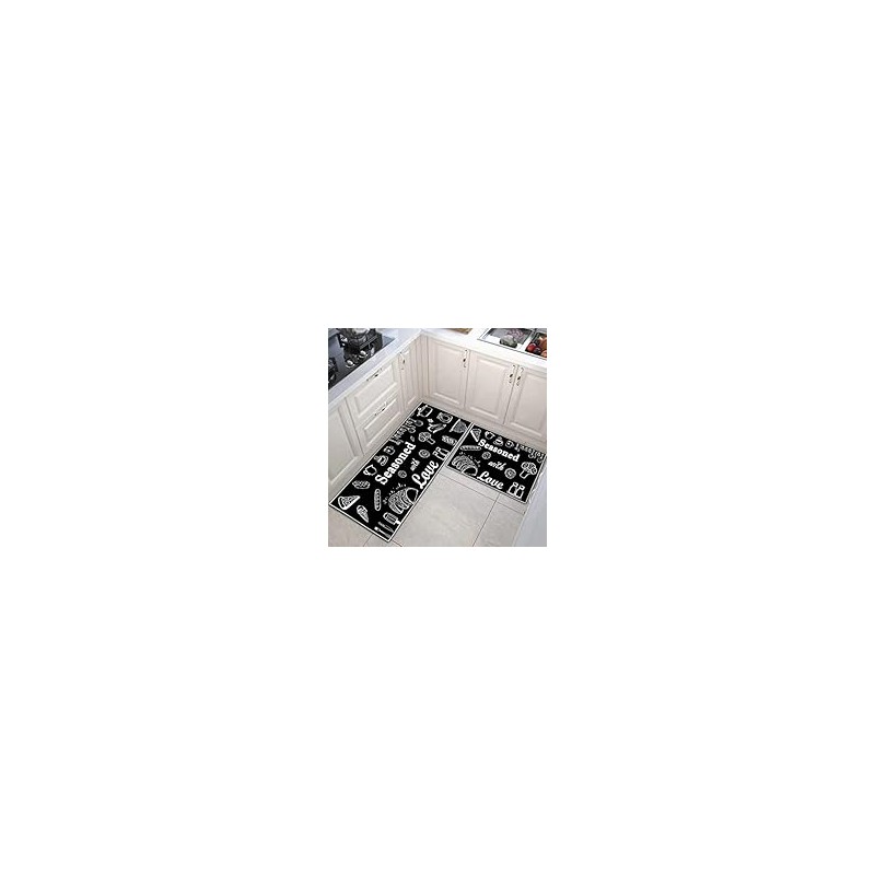 Améliorez votre cuisine avec notre ensemble élégant de deux tapis de cuisine, arborant un charmant design "Assaisonné avec Amour". Le fond noir et les graphiques blancs créent une atmosphère accueillante tout en garantissant la sécurité grâce à leur matériau antidérapant. Parfaits pour les environnements culinaires animés, ces tapis allient fonctionnalité et attrait esthétique, en faisant un ajout essentiel à toute cuisine domestique ou commerciale.