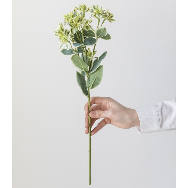 Améliorez la décoration de votre maison avec notre magnifique tige florale artificielle, un parfait mélange de beauté et de praticité. Cette pièce exquise présente un design droit et élancé qui imite l'élégance naturelle des vraies fleurs, en faisant un ajout idéal à tout environnement. Le haut de la tige met en valeur de petites fleurs densément regroupées dans des teintes vibrantes de vert avec des nuances subtiles de jaune ou de crème. Les pétales sont délicatement dentelés, ajoutant une touche de réalisme qui ne manquera pas d'impressionner. Complétant ces éléments floraux, des feuilles allongées en forme d'ovale dans des tons variés de vert foncé et clair. Chaque feuille est légèrement texturée et certaines présentent des variations, mettant en valeur un beau mélange qui renforce son apparence réaliste. Fabriquée à partir de matériaux synthétiques de haute qualité, cette tige florale artificielle offre durabilité sans sacrifier l'esthétique. Sa construction en plastique flexible garantit qu'elle conserve sa forme au fil du temps tout en offrant une option sans entretien pour ceux qui aiment la verdure mais préfèrent un faible entretien. Cette pièce polyvalente mesure environ 30 à 40 cm de long, ce qui la rend adaptée à diverses compositions ou comme élément décoratif autonome dans des vases ou sur des étagères. Que vous cherchiez à égayer votre salon ou à ajouter du charme à votre espace de bureau, cette tige florale artificielle s'intègre parfaitement dans tout style de décoration, des thèmes modernes minimalistes aux designs botaniques classiques. Ajoutez une touche de nature sans tracas en incorporant cette belle tige florale artificielle dans votre maison dès aujourd'hui ! Sa palette de couleurs neutres lui permet de compléter sans effort divers styles d'intérieur tout en apportant vie et dynamisme à n'importe quelle pièce.