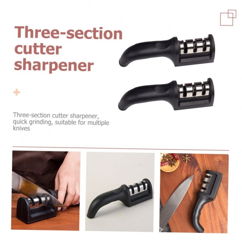 L'ensemble comprend deux outils d'affûtage, chacun fabriqué avec une poignée ergonomique qui offre une prise en main confortable. Le design noir élégant ajoute non seulement une touche d'élégance à votre cuisine, mais assure également durabilité et fonctionnalité. Fabriquées en plastique de haute qualité et antidérapant, les poignées sont faciles à tenir même lors d'une utilisation prolongée.