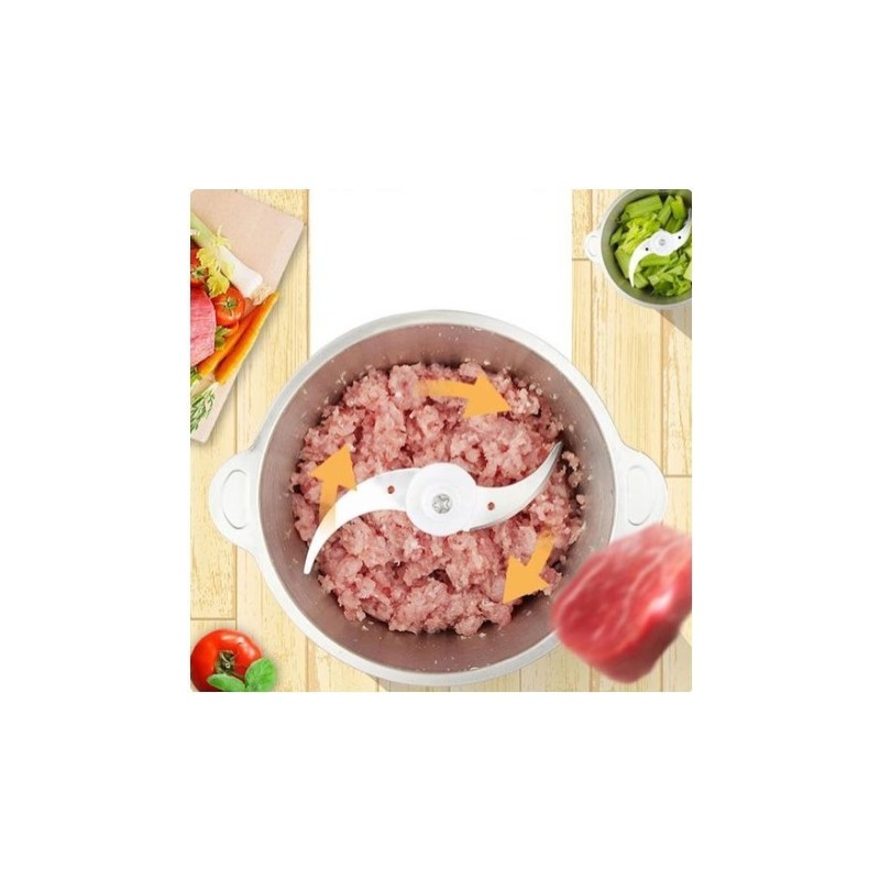 Hachoir contient 5 lames tranchantes et robustes en acier inoxydable avec des couvercles en plastique pour les protéger et des accessoires supplémentaires lorsque vous devez les changer. Chaque lame peut être utilisée pour un type de hachage spécifique + un broyeur pour réduire les aliments comme la chantilly maison et le fromage à la crème , et pour préparer le gâteau. + 3 morceaux de silicone : 2 pour fixer le broyeur au sol, et 1 dans le couvercle pour éviter que rien ne sorte pendant le broyage. Hachoir a une fonction de contrôle de vitesse Il vous offre deux modes de sélection de vitesse, permettant de hacher, hacher et mélanger légèrement pour préparer des salades et des soupes, et entre purée et broyage fin pour préparer diverses sauces et viandes, vous permettant. Savourez des plats frais et délicieux