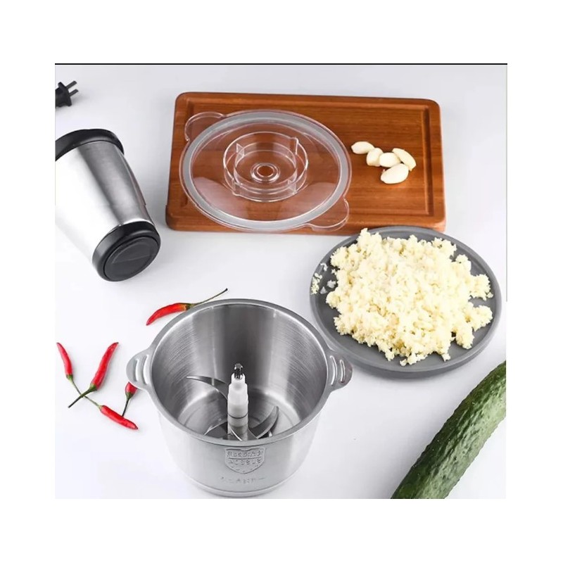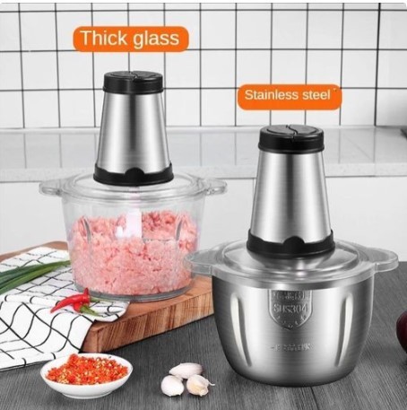 Hachoir électrique 3/2 Liter, multifonction ,2 Bols Inox et Verre,5 Lames,batteur