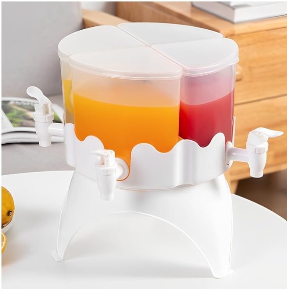 [Base rotative à 360 °] Ce distributeur de boissons comprend une base rotative.Installez la bouilloire froide sur la base, facile à tourner et obtenez la saveur préférée.La base est équipée d'une broche, détachable et facile à nettoyer. [Application large] Ce distributeur de boissons est parfait pour faire diverses boissons.Comme l'eau, le café glacé froid, le thé glacé, la limonade, l'eau de concombre, le soda, le vin, les jus, etc.Convient pour la fête, la collecte, la maison, le bureau, la maison, le camping, le pique-nique, etc. [Matériel PP de qualité alimentaire] Ce distributeur de boissons est fait de matériaux PP de haute qualité qui est de qualité alimentaire, respectueuse de l'environnement et durable.De plus, c'est résistant à la chaleur qui peut résister aux températures de -4 à 302 ℉.Convient pour stocker de l'eau froide ou chaude. [Grande capacité et conception de robinet] Chacune de la bouilloire froide a une capacité de 1 L et l'ensemble du distributeur de boissons peut contenir 4L au total.De plus, ce distributeur de boissons comprend un design de robinet qui est facile à obtenir de l'eau potable en appuyant doucement sur le robinet. [Conception amovible] Ce distributeur de boissons est composé par 4 bouilloires froides formant la conception du compartiment.Chaque bouilloire froide est amovible pour une utilisation séparée et indépendante.De plus, la conception du compartiment est la réduction de l'espace et bien l'organisation de garder le comptoir rangé.