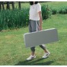 Le plateau rectangulaire est fabriqué à partir d'un matériau lisse et léger qui non seulement rehausse son apparence élégante, mais assure également un entretien facile. Disponible dans une finition argent métallique contemporaine ou gris clair, il s'harmonise sans effort avec n'importe quel décor extérieur. Le cadre en aluminium, robuste mais léger, offre un excellent soutien tout en maintenant un poids global maniable pour le transport.