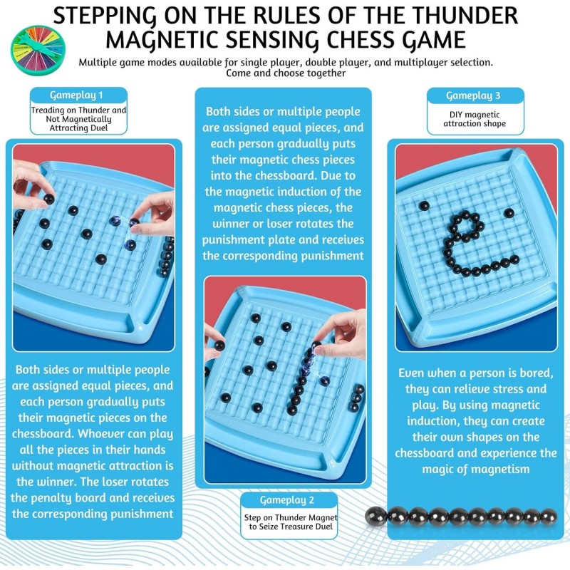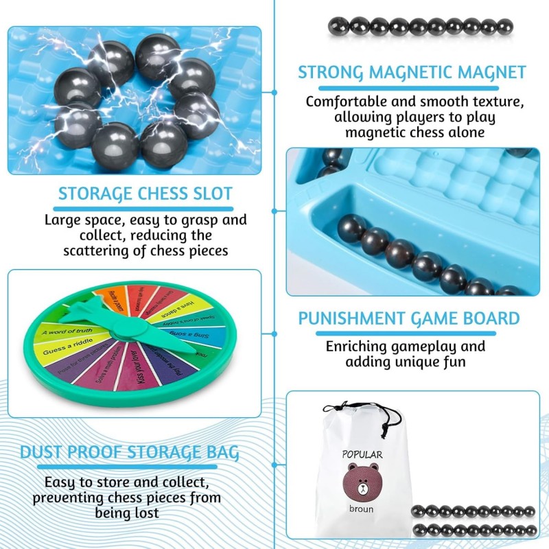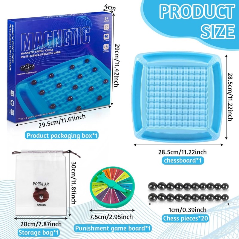 Magnetic Chess Set with 20 Stones Punishment Wheel, Magnetic Chess Board, Strategy Magnetic Chess Game,Educational Checkers Game